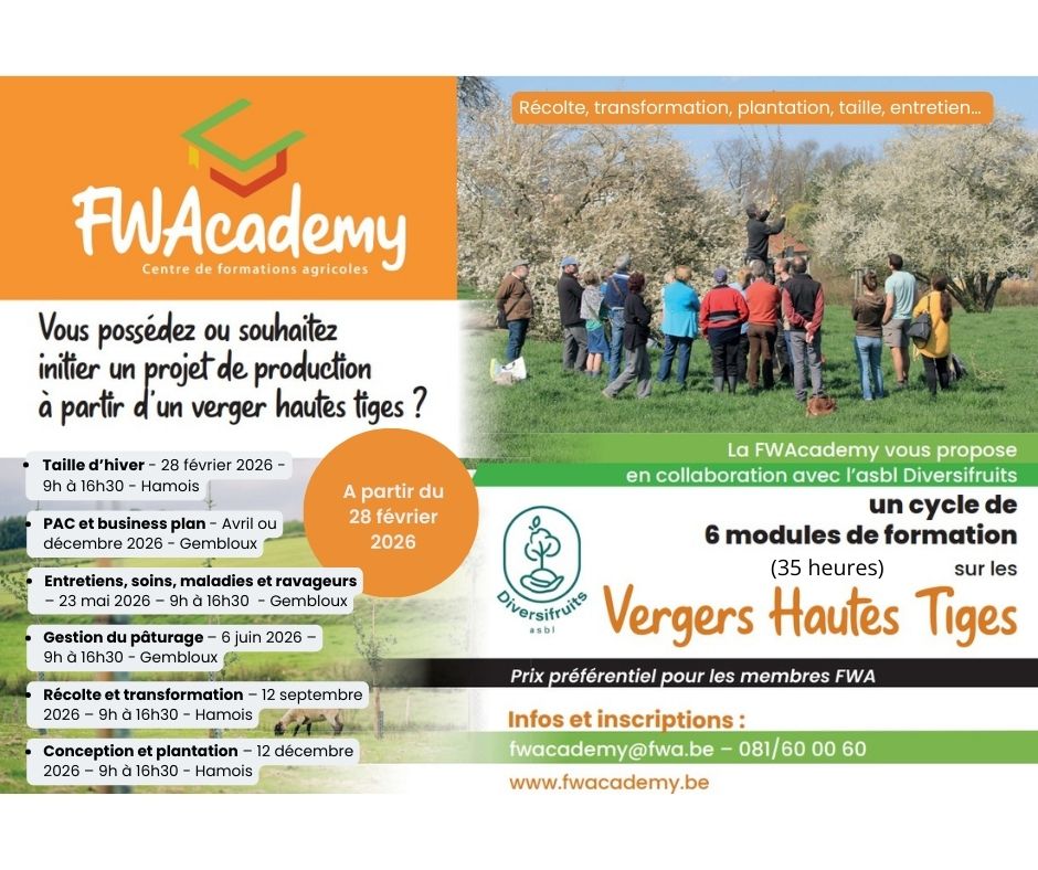 | Implantation et gestion d’un verger haute tige | Province de Namur | 35 | 263€ | 321€ |